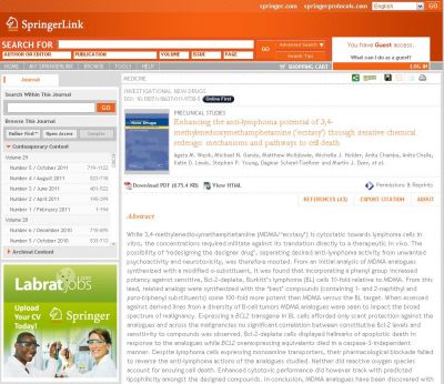 がんの治療薬にあらたな光?英大学研究チームが発表一般的に「エクスタシー」として知られているドラッグをガンの治療薬として改良する研究内容が19日、専門誌Investigational New Drugsに発表されている。